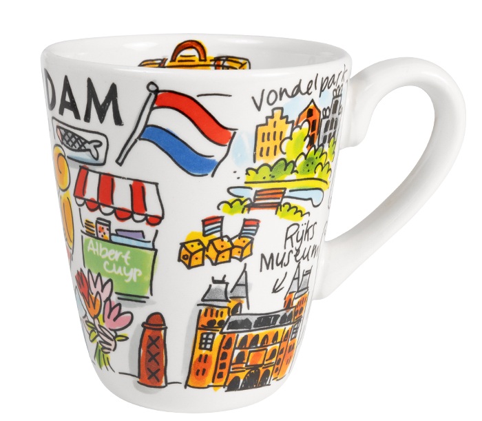 With the Blond City Icon Amsterdam mug (0.35L), you'll never drink boring coffee again. This mug from the Blond City collection is covered in typical Amsterdam illustrations: think of the Rijksmuseum, the Vondelpark, canal houses, and of course the Albert Cuyp market. Whether you're from Amsterdam or just love the city, this mug brings the city to life at your breakfast table or desk. A great size for tea, cappuccino, or whatever you like. Mix and match with other Blond Amsterdam items to complete the Blond City collection.