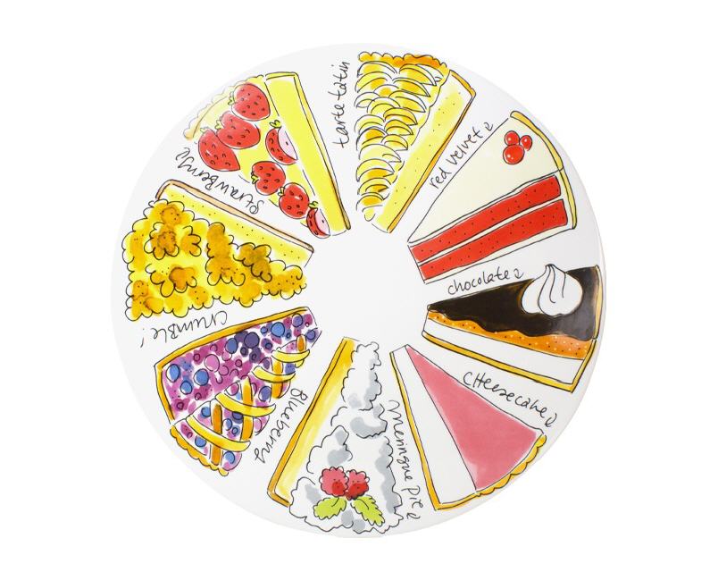 Wegens grote vraag heeft Blond Amsterdam het thema met de favoriete taartjes laten terugkomen, waaronder dit te gekke vernieuwde taartplateau! Op het plateau staan illustraties van hun favoriete taartjes. Bak een heerlijke taart en serveer deze in stijl op het taartplateau.