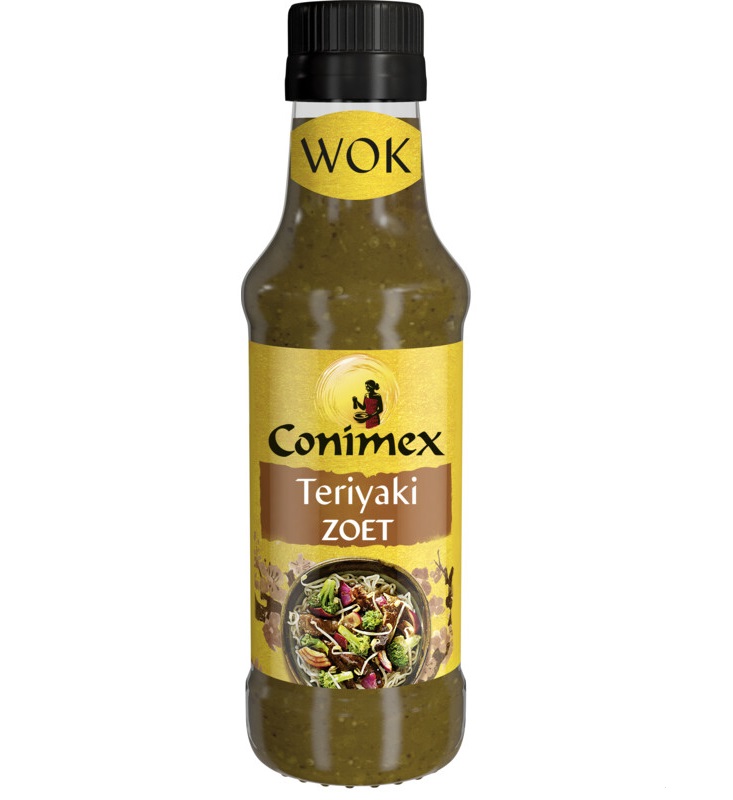 Conimex Teriyaki-Woksauce ist eine köstliche süsse Sauce mit authentischen japanischen Kräutern und Gewürzen, für das perfekte orientalische Wok-Gericht.