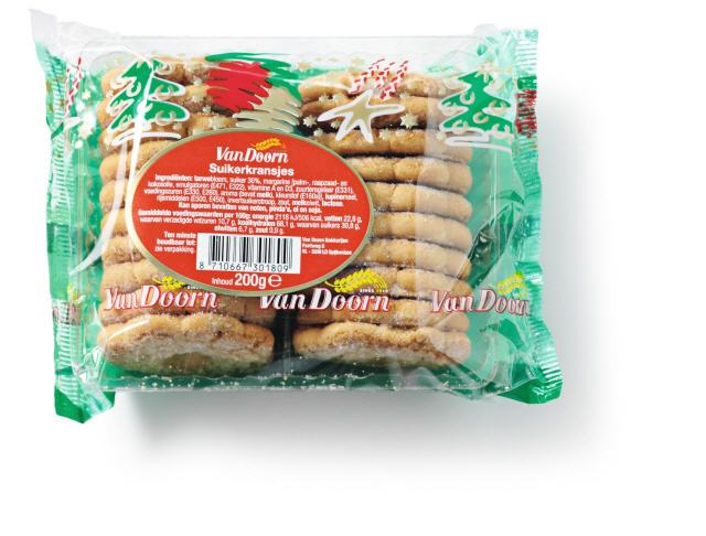 TARWEbloem, suiker 30%, margarine: [palm-, raapzaad- en kokosolie, emulgatoren (E471, E322), vitamine A en D3, zuurteregelaar (E331), voedingszuren (E330, E260), aroma (bevat MELK), kleurstof (E160a)], LUPINEmeel, rijsmiddelen (E500, E450), invertsuikerstroop, zout, MELKeiwit, LACTOSE.