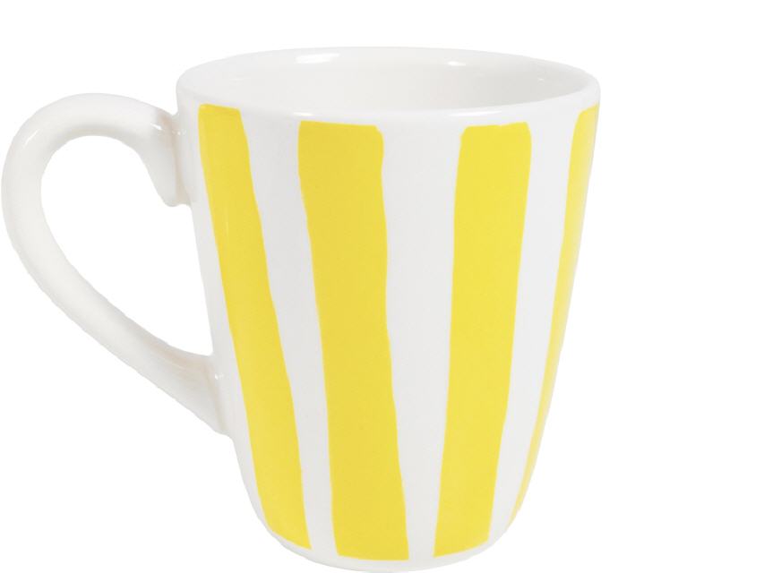Die Even Bijkletsen Kollektion wurde mit neuen Items erweitert. Dieses Mal nicht mit den typischen Illustrationen, sondern mit farbenfrohen Streifen. Toll zum Kombinieren mit den übrigen Even Bijkletsen Artikeln oder anderen Kollektionen. Auf dieser Tasse stehen gelbe Streifen. Auf der Innenseite ist ein Stern abgebildet.