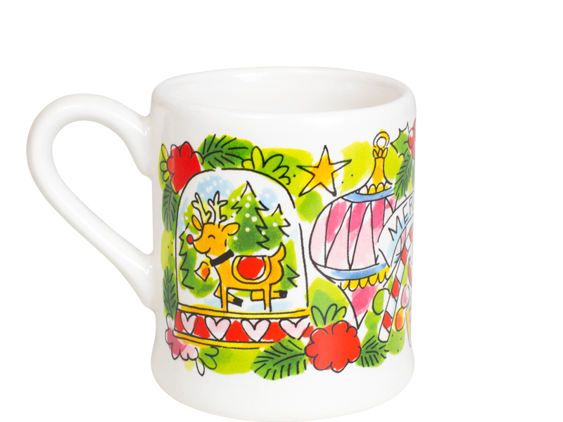 Feiere Weihnachten dieses Jahr mit der neuen Blond Weihnachtskollektion. Das Geschirr besteht hauptsächlich aus viel rot und grün, den bekannten warmen Weihnachtsfarben. Auf dieser Minitasse sind schöne Äste, Weihnachtskugeln, Cracker und Sterne abgebildet.