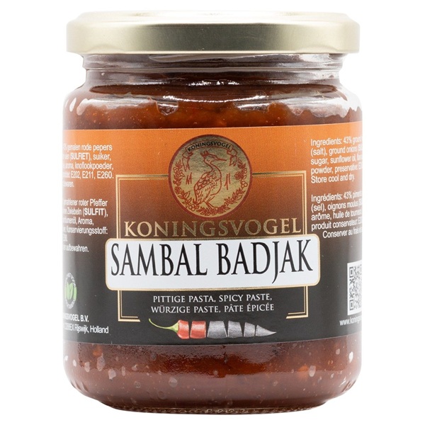 Koningsvogel Sambal Badjak. Spicy fried sambal for rice table, meat, chicken and fish dishes.