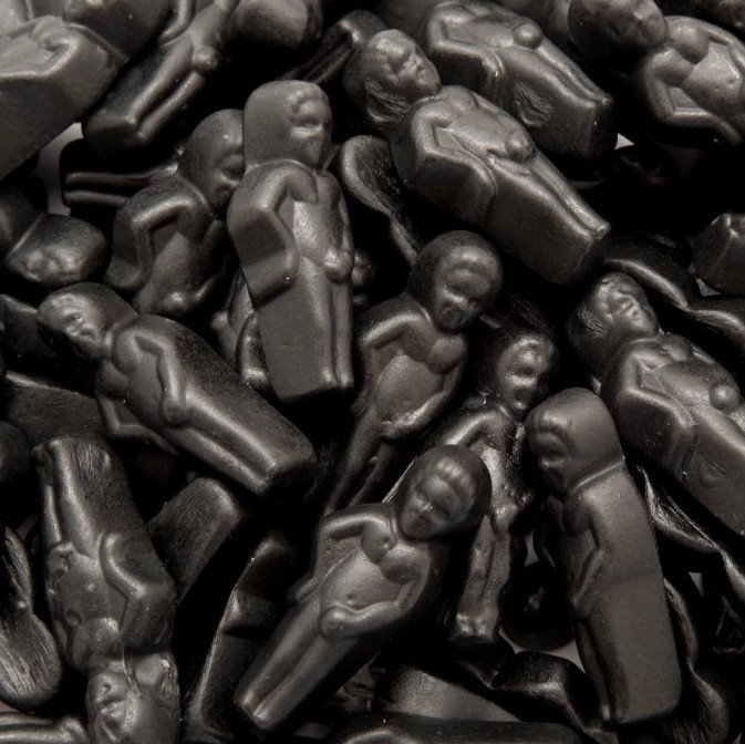 Sugar, glucose syrup, maltodextrin, corn starch, gelatin, salmiac salt, licorice root extract, emulsifier (gum arabic), coloring (E153), natural flavor, salt, vegetable oil (coconut), glazing agent (carnauba wax).