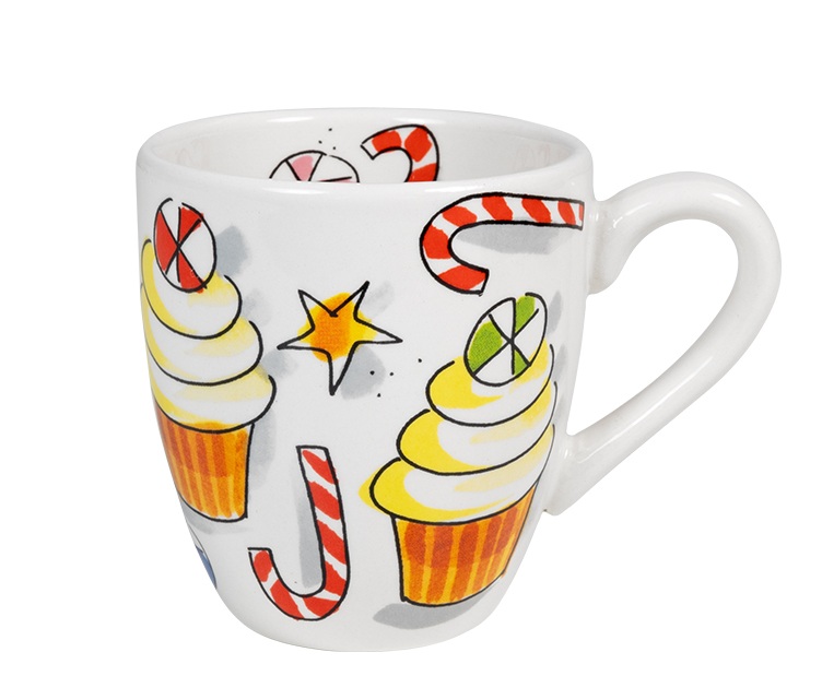 Celebrate the holidays in style with this 0.2 liter mini mug from the Blond Amsterdam Christmas collection. The mug features cheerful cupcakes in a Christmas theme. Perfect for a cozy coffee or tea moment during cold days. The mini mug is ideal for espresso or a mini cappuccino, and also makes a great eye-catcher on the festive table. Collect them all or mix and match with other cups, plates, or bowls from Blond Amsterdam. An original gift or just something sweet for yourself.