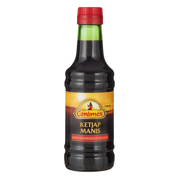 Ketjap Manis ist ein süsser Ketjap, hergestellt aus Sojasauce und sorgfältig ausgewählten Zutaten. Ketjap Manis darf nicht fehlen in asiatischen Gerichten wie Nasi, Bahmi und Sate und gibt auch Saucen und Suppen eine überraschende Würze.