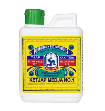 Ketjap Kaki Tiga Medja No.1 ist eine extra süsse Sojasauce, die aus natürlich gebrauten, direkt aus Asien importierten Sojabohnen hergestellt wird. Das bedeutet, dass die Sojabohnen in einem authentischen, mehrmonatigen, natürlichen Prozess fermentiert und zu Sojasauce verarbeitet wurden. Verleiht den Gerichten eine schöne Farbe und einen reichen Geschmack.