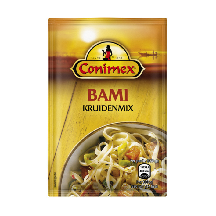 Bami Goreng bedeutet wörtlich "gebackener Mie (chinesische Nudeln)". Diese Mischung enthält sorgfältig ausgewähltes Gemüse und Gewürze, womit Sie selbst einen herrlichen Bami kreieren.