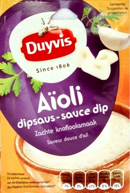 Duyvis Dippsauce Aïoli Eine feine, milde Knoblauch Dippsauce zu Fleisch, Rohkost, Käse und natürlich Chips.Inhalt: 6 Gramm Aktion war erfolgreich Das hat leider nicht geklappt. Warenkorb anzeigen Zur Kasse Weiter einkaufen Nicht auf Lager 1,60 CHF inkl. 2.6% MWSt, exkl. Versandkosten Anzahl: zak In den Warenkorb Auf den Merkzettel