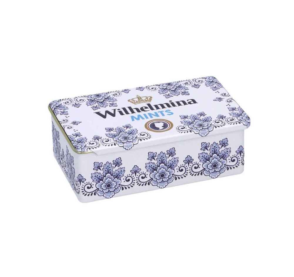 Schön zu geben! Schön zu bekommen! Delfter Blau Dose mit 100 Gramm Wilhelmina Pfefferminz.