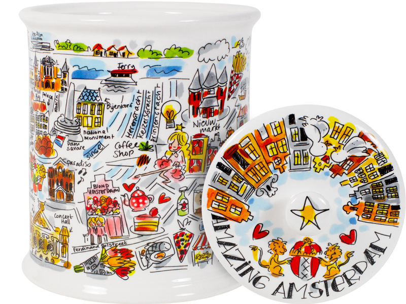 We love to travel! Auf dieser Vorratsdose sind alle tollen Hotspots von Amsterdam abgebildet. Die City Kollektion von Blond Amsterdam wurde inspiriert von folgenden Städten: London, Paris, Rom, New York, Brüssel und Amsterdam.