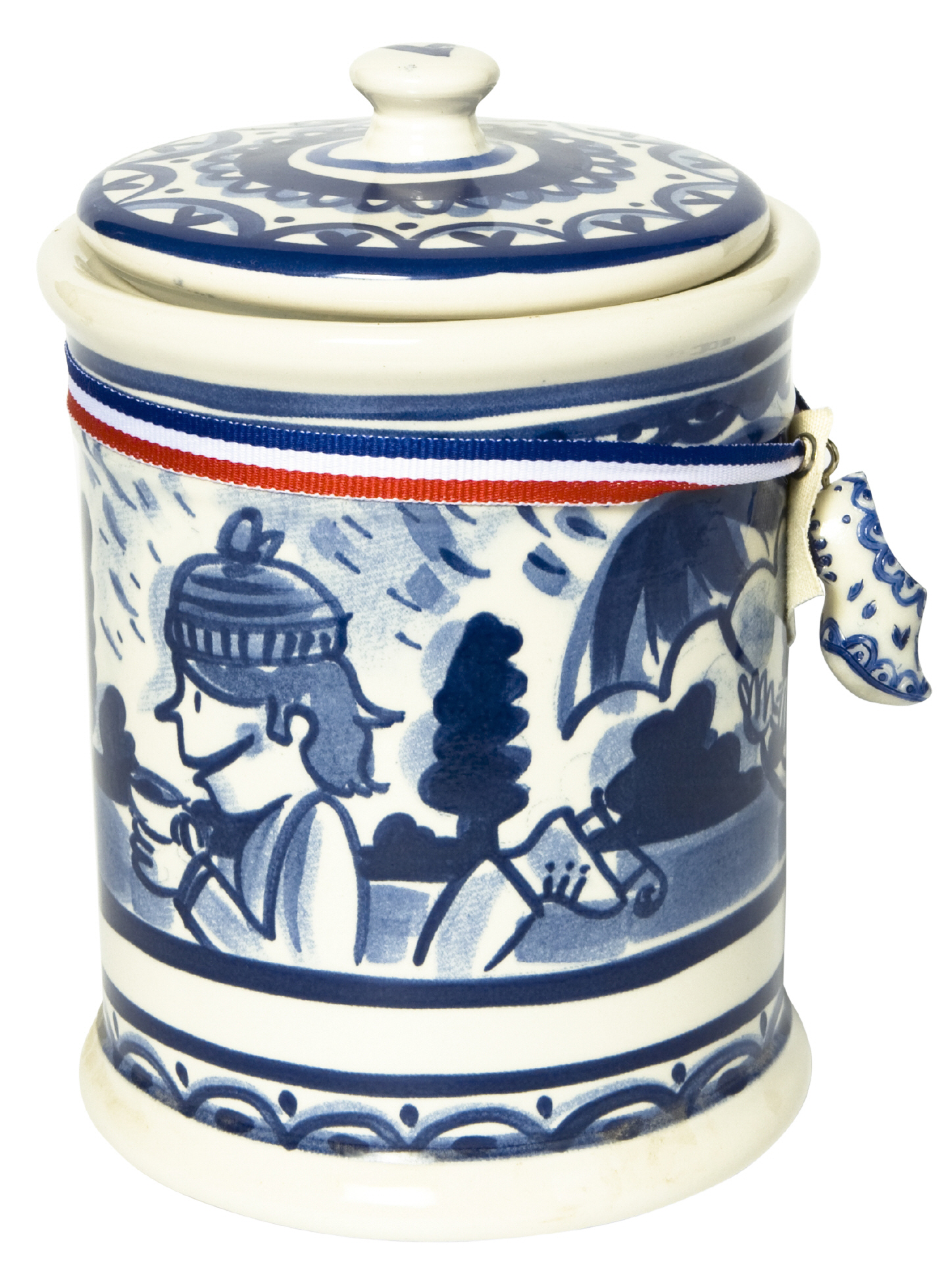 Diese Vorratsdose wurde mit einem "Augenzwinkern" in Richtung Delftsblau Geschirr entworfen.