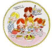 Der neue Dessertteller mit fröhlichen Illustrationen und dem Text "Let's Celebrate!"