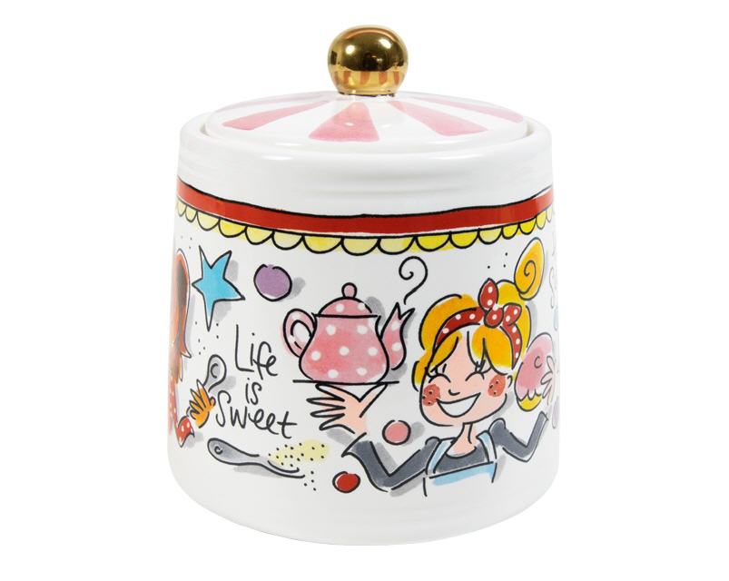 Die Even Bijkletsen-Kollektion ist immer noch der grosse Favorit vieler Blond-Fans. Die Zuckerdose wurde umgestaltet, ist aber immer noch an den fröhlichen Zeichnungen und lustigen Zitaten auf der Kanne zu erkennen. Die Zuckerdose ist mit ihrem goldenen Deckel besonders festlich. Die neuen Artikel lassen sich gut miteinander kombinieren, passen aber auch sehr gut zu unseren aktuellen Even Bijkletsen-Artikeln.