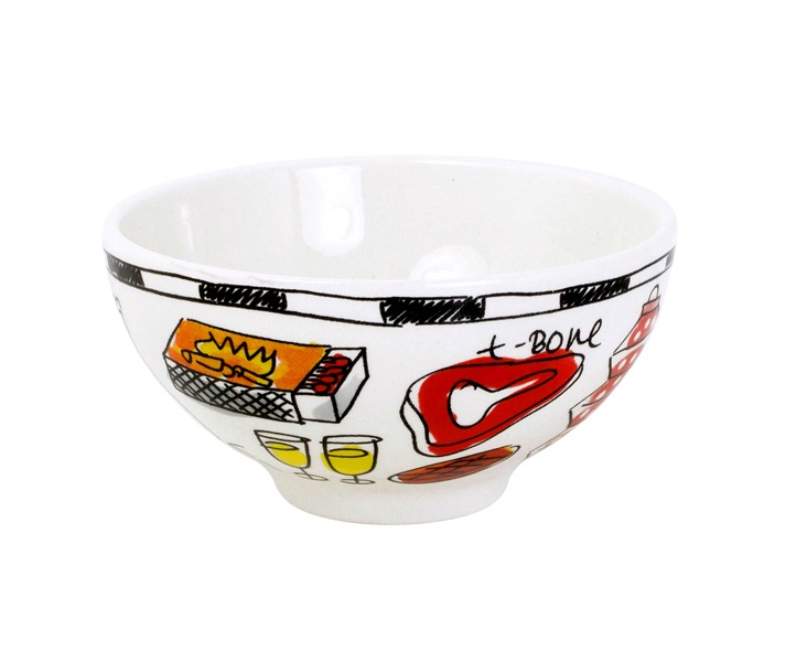 Diese Schale "Onion" gehört zur BBQ Kollektion und ist ideal zum Befüllen von BBQ Beilagen. Auf der Schale sind feine BBQ Esswaren abgebildet.