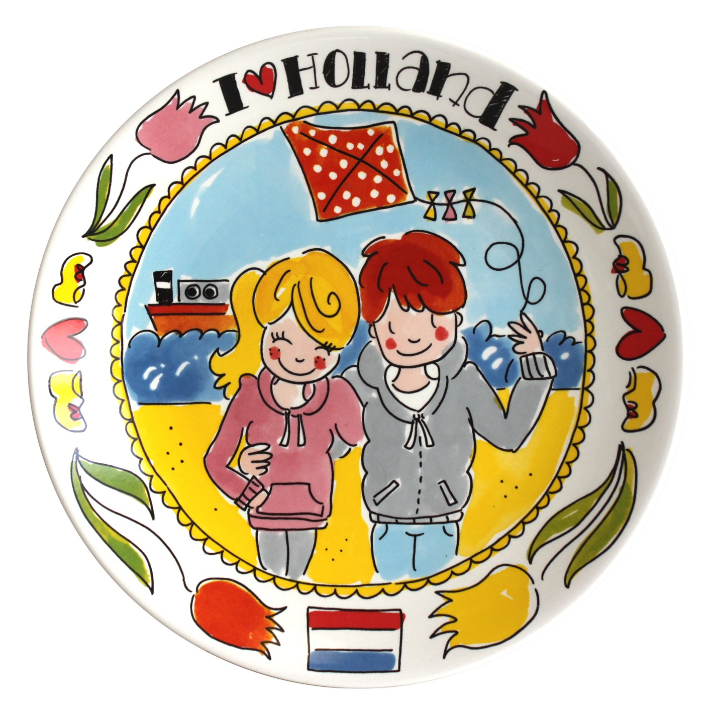 Dieser fröhlicher Teller mit typisch holländischen Illustrationen ist Teil des I love Holland Geschirrs.