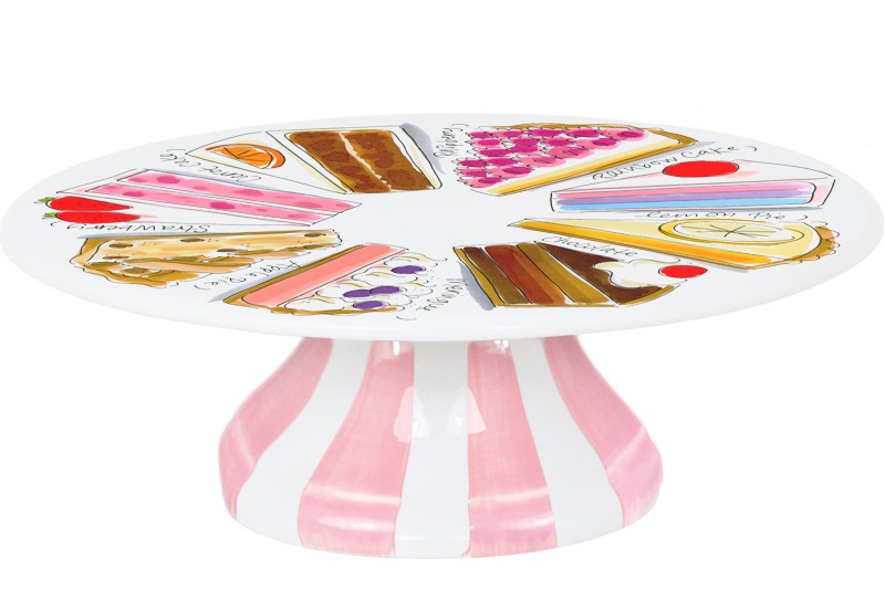 Serviere Deine Lieblingstorten auf dieser tollen Tortenplatte. Auf der Platte sind lauter feine Tortenstücke wie Carrot Cake, Chocolate cake, Apple Pie, Lemon Pie und viele mehr abgebildet.