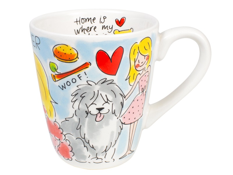 Diese Tasse ist für echte Hunde-"Lover" und voll mit lieben Hunden. Auf der Innenseite steht der Text 'Home is where my dog is'.