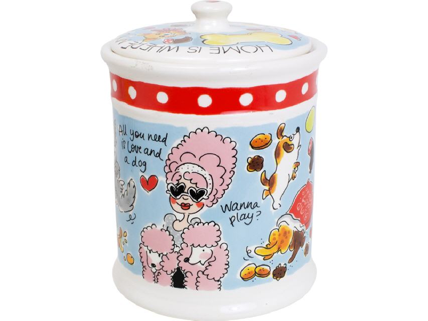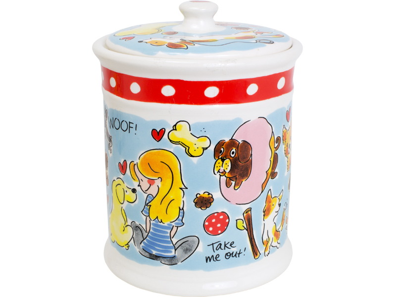 Bewahren Sie die Leckerlis oder das Futter Ihres süssen Hundes in dieser praktischen Dose auf. Die hellblaue Dose hat ein rotes Band mit weissen Punkten und fröhlichen Hundeillustrationen. Diese Aufbewahrungsdose lässt sich gut mit dem grossen und dem kleinen Hundenapf kombinieren.
