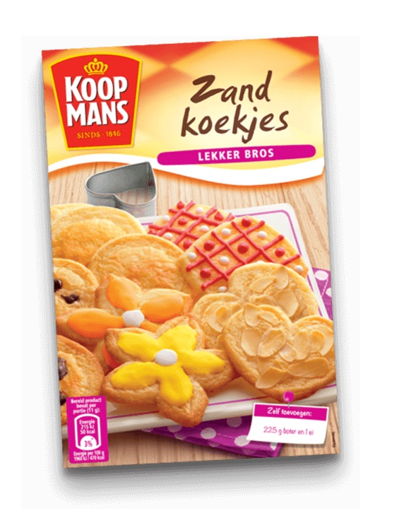 Met Koopmans Zandkoekjes kun je de heerlijkste koekjes bakken en kun je naar eigen smaak variëren. In een handomdraai bak je lekker brosse koekjes.