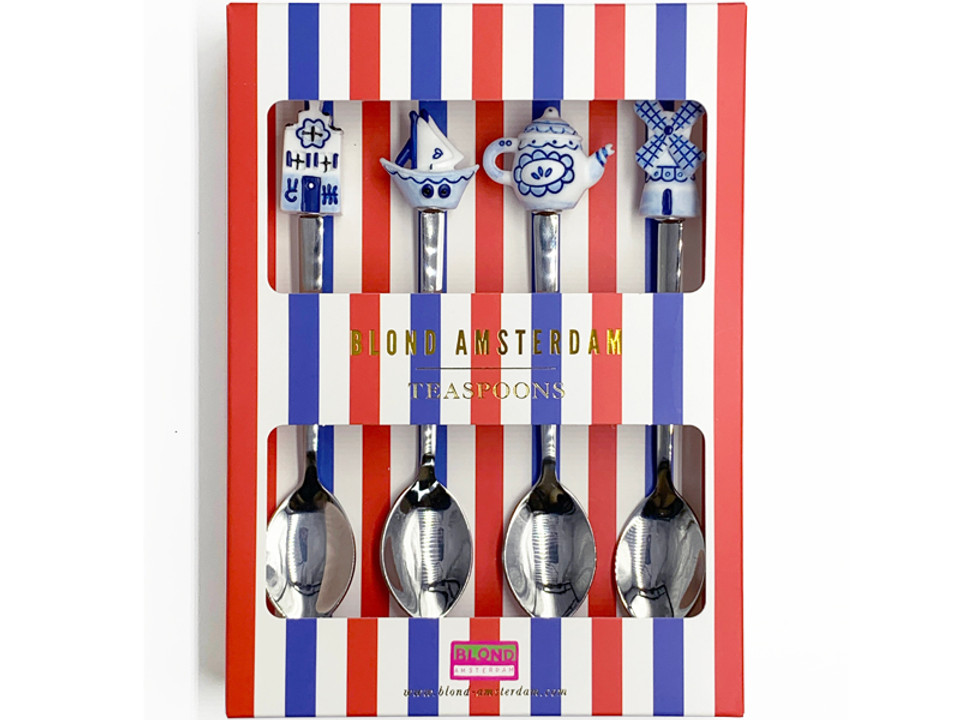 Voeg een vleugje Nederlandse traditie toe aan je theemomenten met de Set van 4 theelepels uit de Delfts Blond van Blond Amsterdam! Elke lepel in deze set is versierd met een charmant Delfts Blond ontwerp bovenop het handvat, zoals een klompje, molentje of een gezellig Amsterdams huisje. Deze iconische symbolen zijn verpakt in de kenmerkende Blond Amsterdam-stijl. Deze theelepels zijn ideaal voor het roeren van je favoriete kopje thee, koffie of zelfs een dessert. Perfect als cadeau voor een echte Nederland-liefhebber of als toevoeging aan je eigen Blond Amsterdam collectie. Geef je koffiepauzes een vrolijke Nederlandse twist met deze unieke lepels!