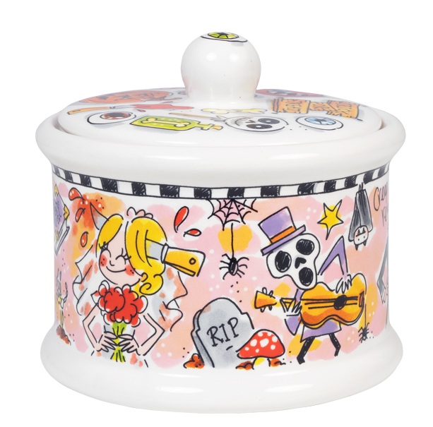 Breng een vleugje humor en griezeligheid in huis met de ronde voorraadpot "Halloween" van Blond Amsterdam. Deze pot is perfect om je snoepvoorraad te beschermen (of gewoon om te verstoppen voor nieuwsgierige vingers). Met vrolijke, maar lekker creepy illustraties is deze pot de perfecte mix van fun en fright. Of je nu een Halloween-feestje organiseert of gewoon houdt van een beetje spooky flair, deze pot is een must-have. Het is de ideale aanvulling voor elke Blond Amsterdam fan die houdt van een beetje donkere humor. Voeg wat Halloween vibes toe aan je keuken met deze unieke voorraadpot!