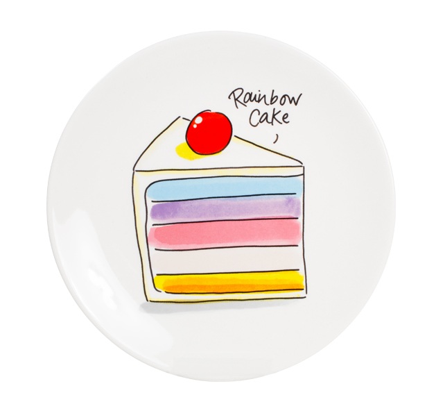 Wegens groot succes hebben wij nieuwe taartborden ontworpen met allerlei verschillende taartjes erop. Fijne bordjes om je zelfgebakken creaties op te eten. Nu met dit leuke bordje met een stuk regenboogtaart erop. Deze taartborden zijn leuk te combineren met de andere bordjes met stukken taart erop en samen met het taartplateau.
